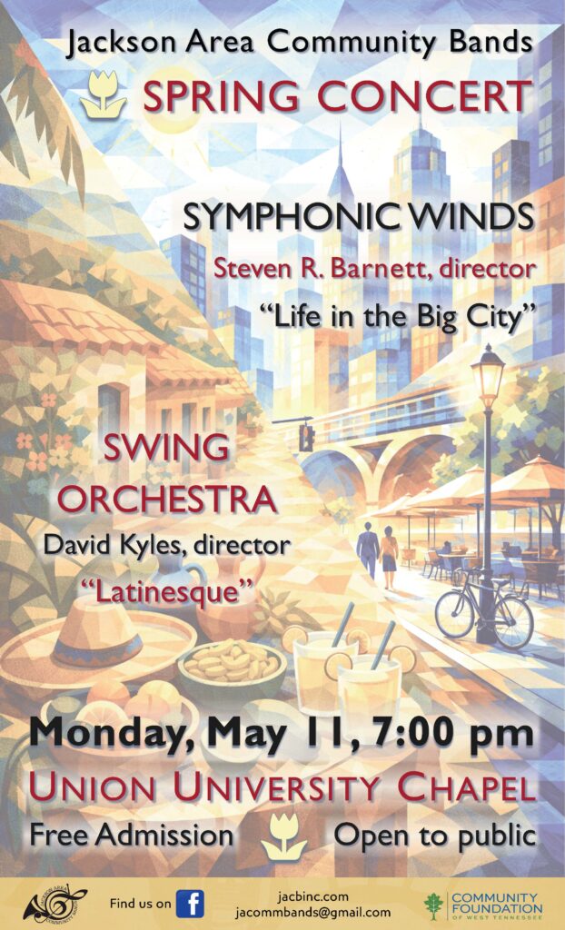 The Jackson Area Community Bands will present their spring concert on Monday, May 11th, 2026, beginning at 7:00 p.m., at Union University’s Savage Chapel. The concert is free and open to the public.